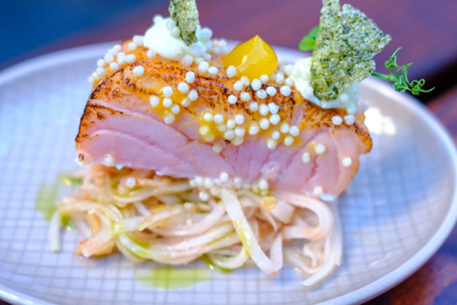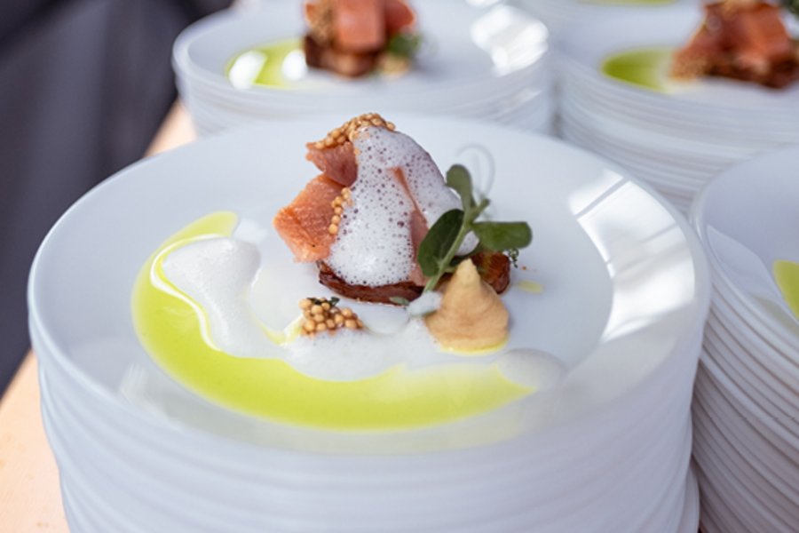 Wer geflämmtem Lachs mit Wasabi Crunch, veganen Fried Mushrooms, gegrillter Auster mit Bouillabaisse-Schaum oder einer Garnelen-Schweinebauch-Praline nicht widerstehen kann und Geschmackserlebnisse liebt, ist beim Feinschmeckerevent genau richtig.